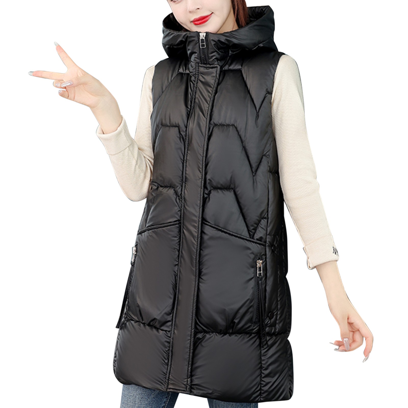 Nsendm Women Casual Solid Coat Jacket Hooded Vest Zipper Pocket Loose Sleeveless Long Coat Womens Vest Outfit Winter Coat Black Xx Large Walmart Com