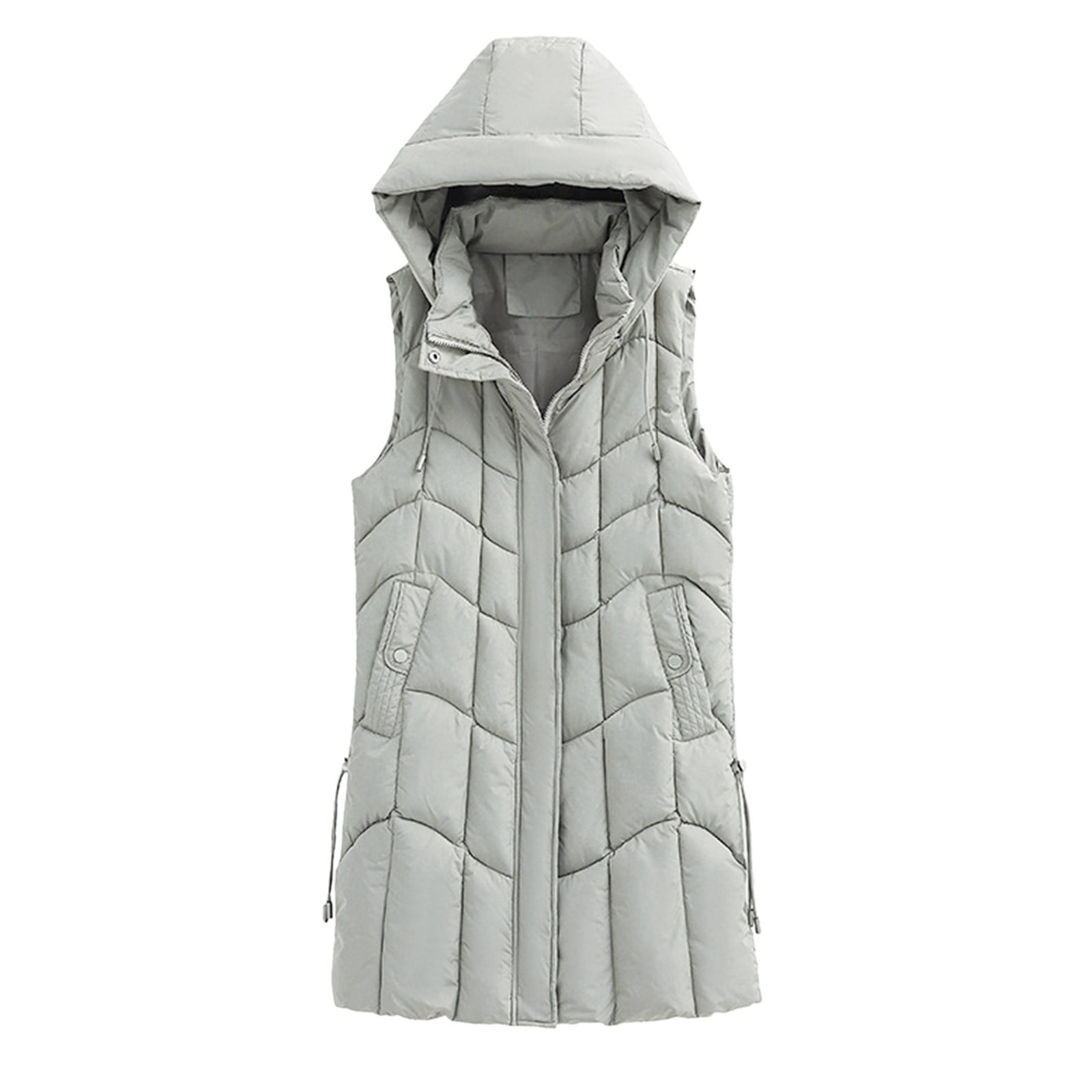 Aompmsdx Womens Sleeveless Long Quilted Vest Hooded On Down Puff Vest Cotton Padded Jacket Winter Outerwearcash On Walmart Com